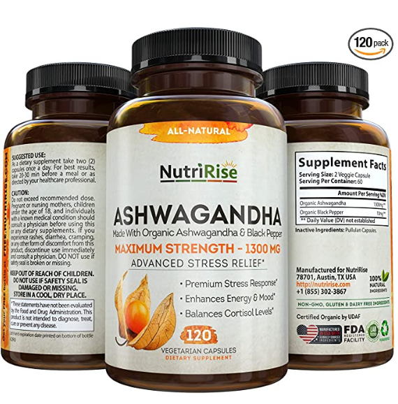 Ashwagandha 1300mg Fabricado con polvo orgánico de raíz de