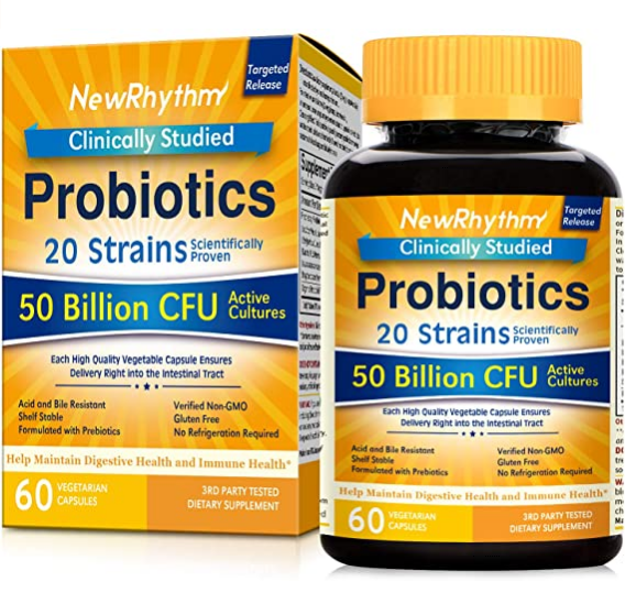 NewRhythm Probiotics 50 mil millones de CFU 20 cepas, 60